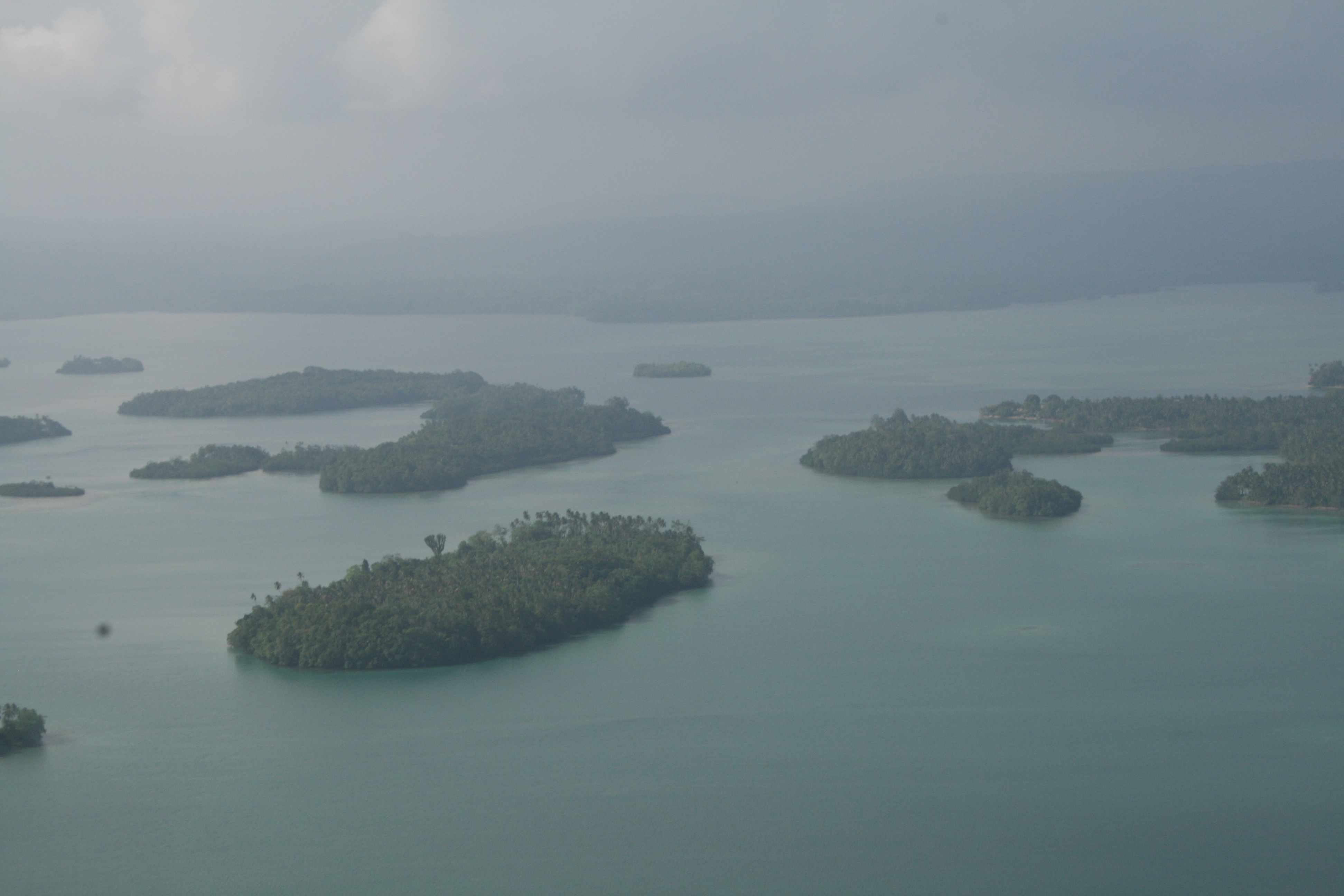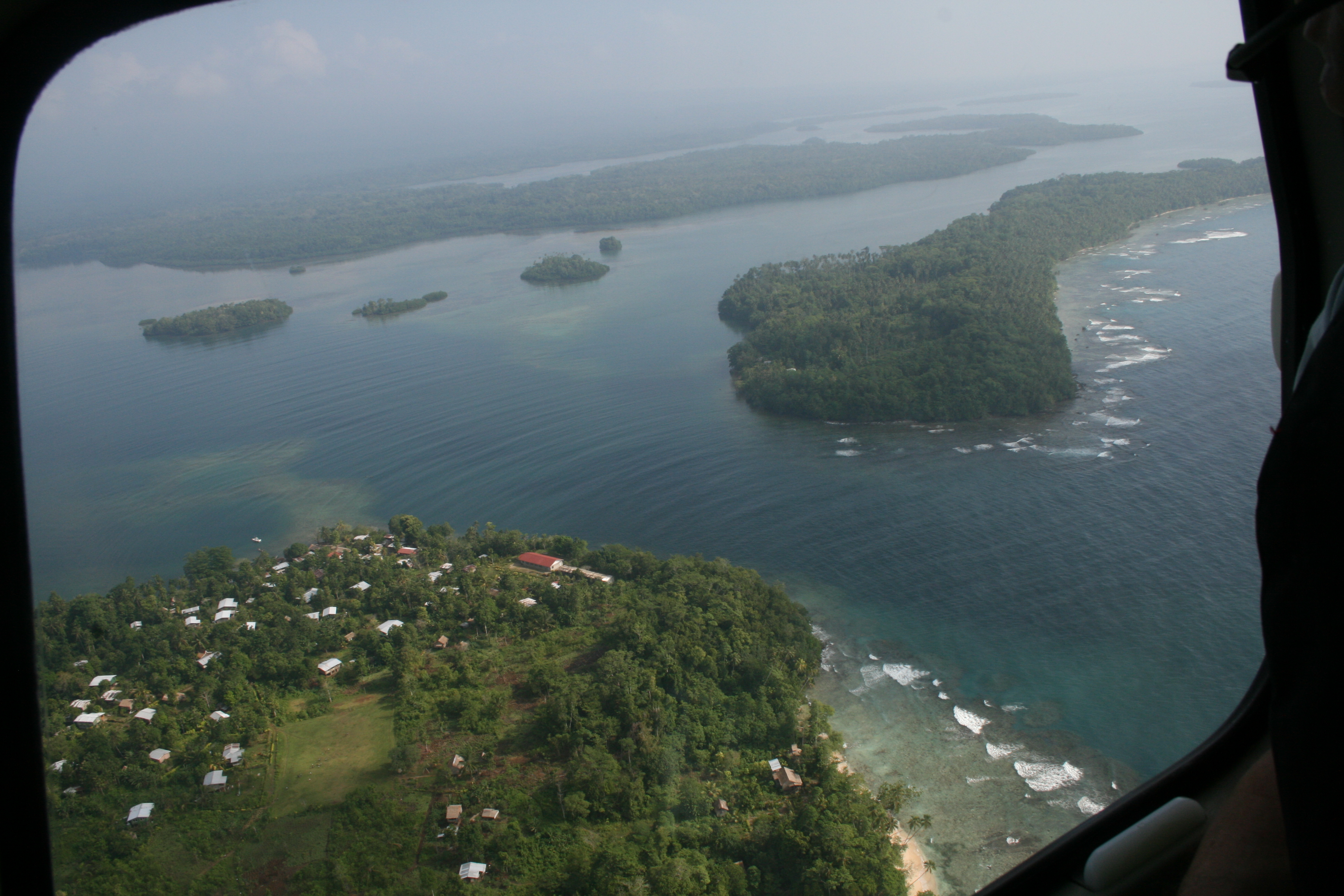 Business trips are not always a pain. Got to go for a day-long ‘copter ride over the Western Province last week. Flew from Honiara to the Morovo Lagoon. Got to fly over and take snaps of our fishing camp on Rovana Island. Then we flew over Noro for a look-see. Then onto Liapari to check in on Noel and Rosie. Had lunch at Gizo, refueled at Munda then ran down hill, home, to Honiara.