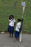 I was looking out my window and zoom’n on people at the bus stop. The girls going home from school are a joyful relief on a Friday, end-day. The tough look’n kid is on his way home from school too. Man, it was hard to be a teen ager.