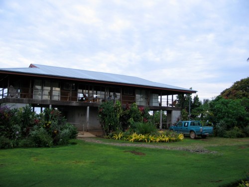 Built on the spine of a ridge, 10 foot off the ground. Verandahs all around. You get 300 degree ocean views. You can see Kolombangara, Choiseul, Vella, Rannonga, Simbo, The Gizo lagoon, The Vona Vona, New Georgia, Rendova… I guess the only island group you can’t see is the Shortlands.