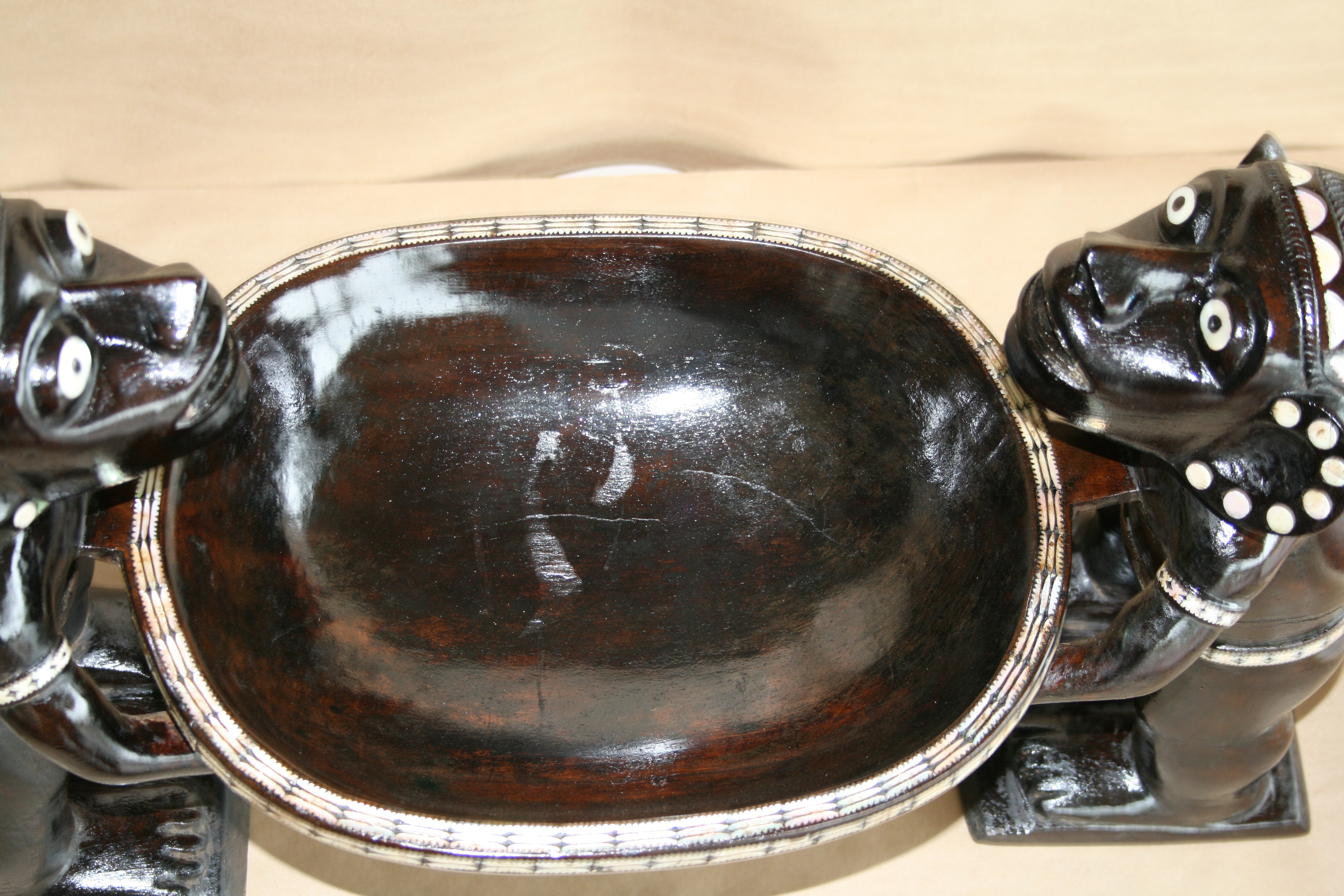 Hardwood with shell inlay. Makira. 19/20c. 600mm x 350mm x 270mm.