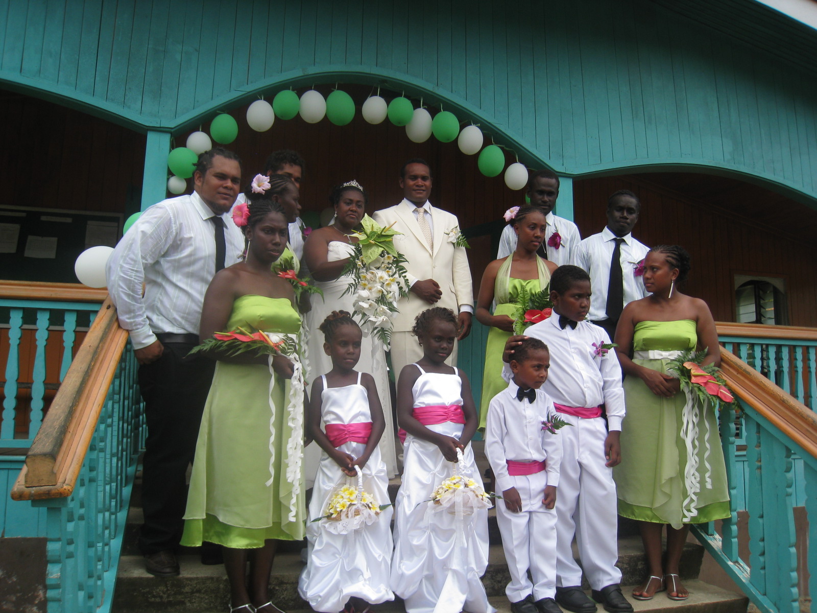 A charming gentleman was at the front of the church. He asked which family I’m with. I said the grooms. He directed me to the left side. I found a spot directly under a fan. But this is the South Pacific, so after a while the same man came up to me and called me by name … no idea how he knew it, I’d never seen him. He said he’s sorry, but I’m on the wrong side. I look around, he’s right. I get up, go round, and find a spot near a fan on the other side. I continue to sweat.