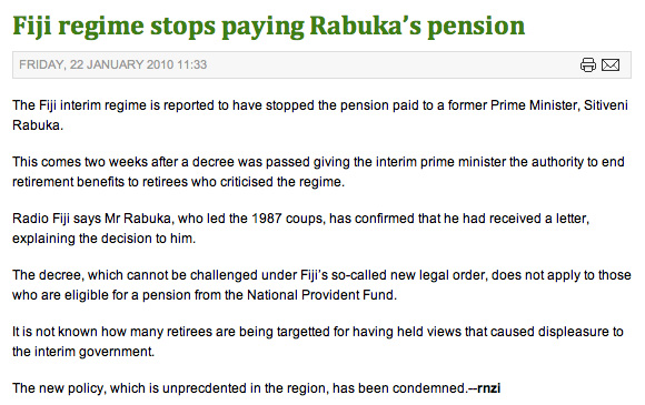 Lovely Fiji… so sad in many ways. Kinda interesting in a karmic way that Rabuka is losing his pension. I’ll have to check and see what he said against Banimarama.