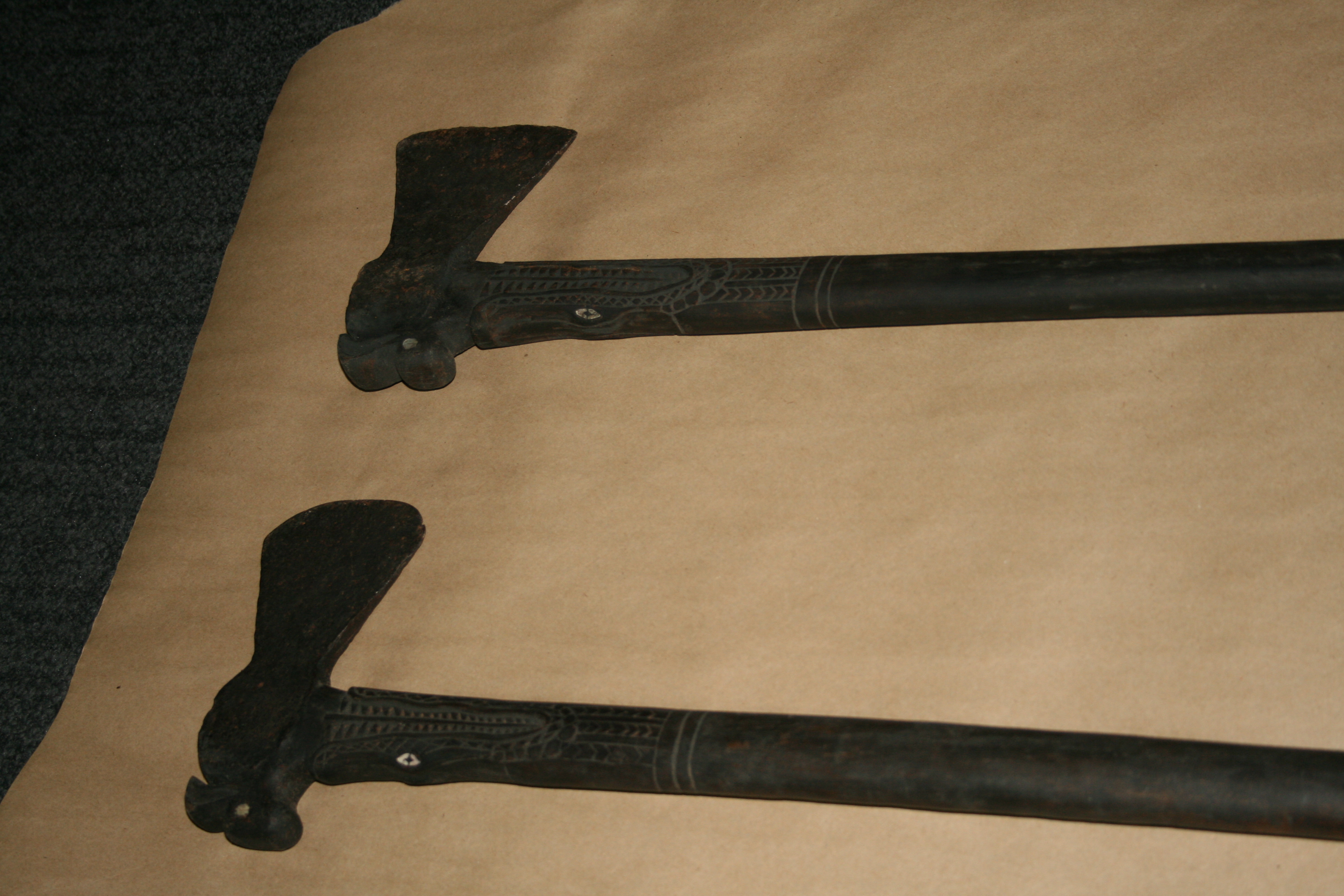 I find these two pieces a bit amazing in that they were made by the same person. The workmanship on both offers a style and overall theme that tells me they were made and owned by one person.