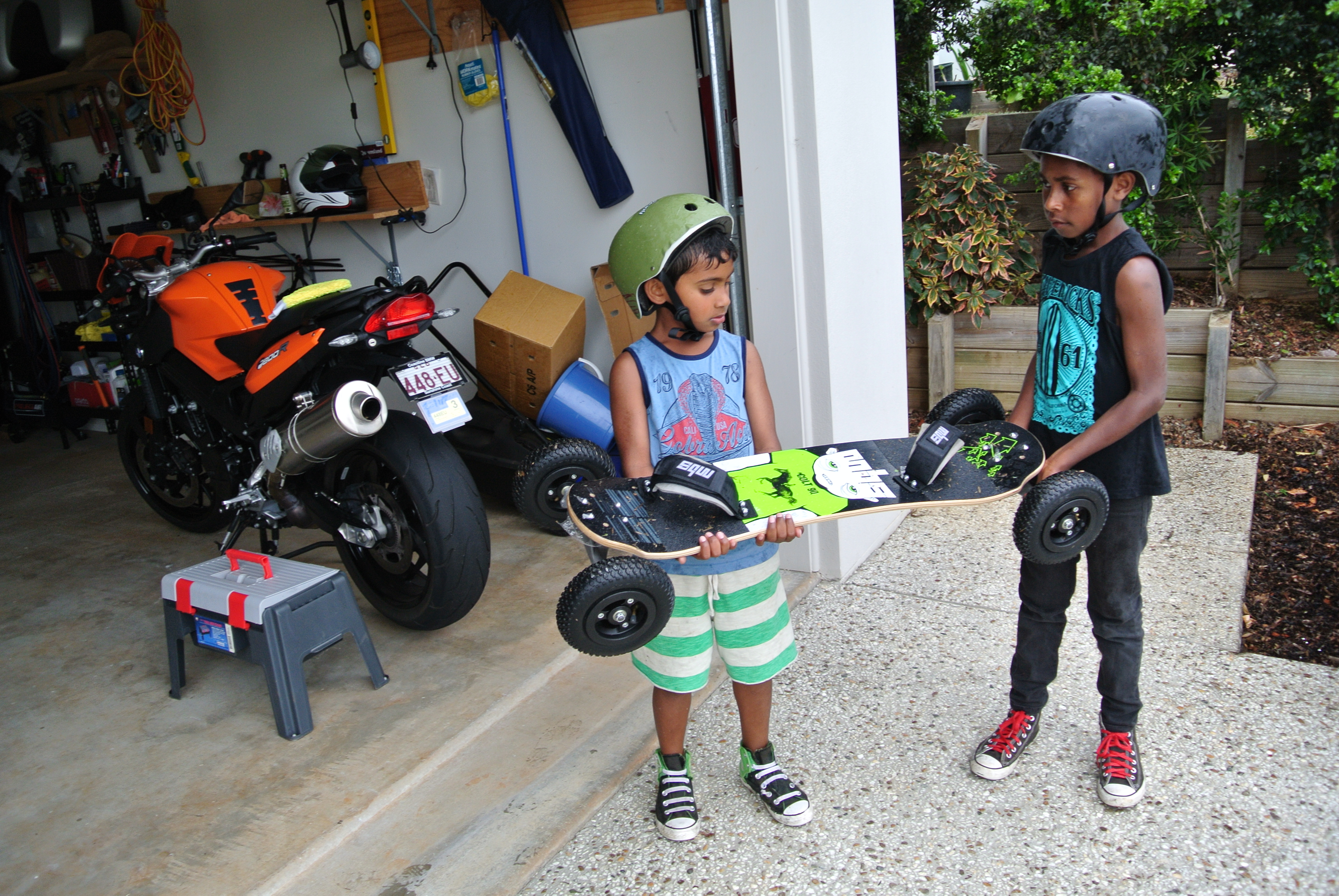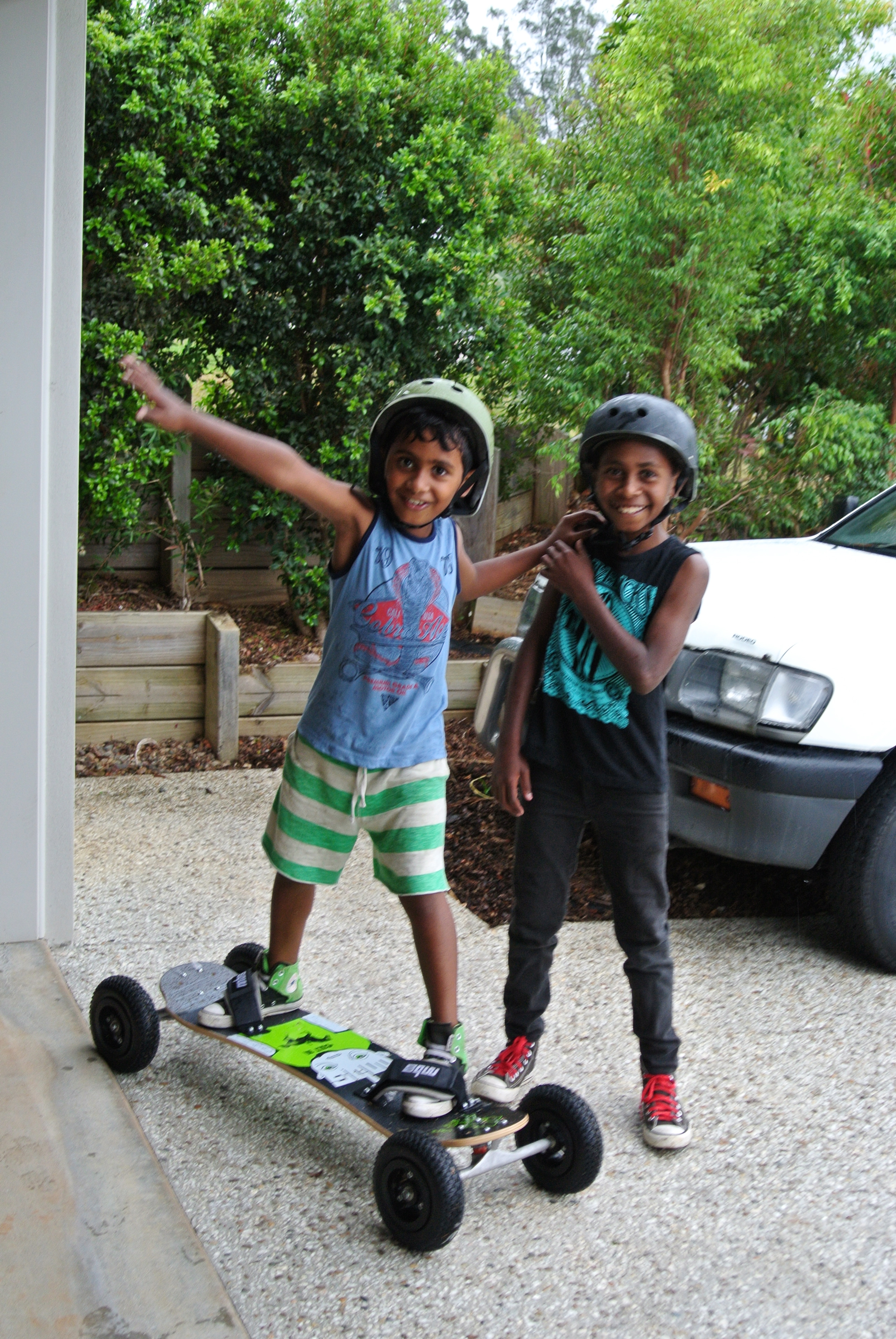 Getting into 4 x 4 skateboards. The aim here is to combine the big wheeled boards with a decent sized, 2 meter, kite. We have long flat beaches here that should give us a great run…