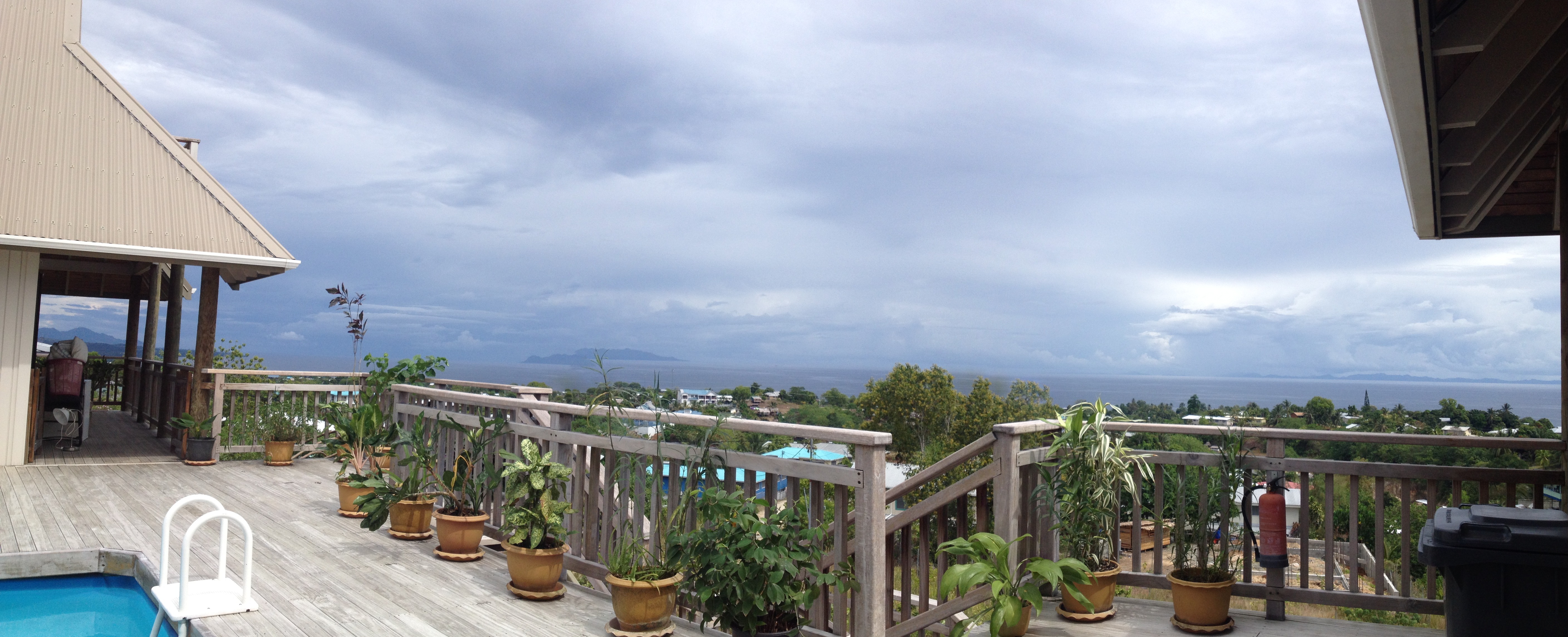 It’s about 80 degrees and heating up. A gun-metal grey sky and the slate flat sea speak of weather coming. The brisk breeze has a hint of rain in it. The skies could open and dump at any moment. or it could be a very warm and humid day here in Honiara.