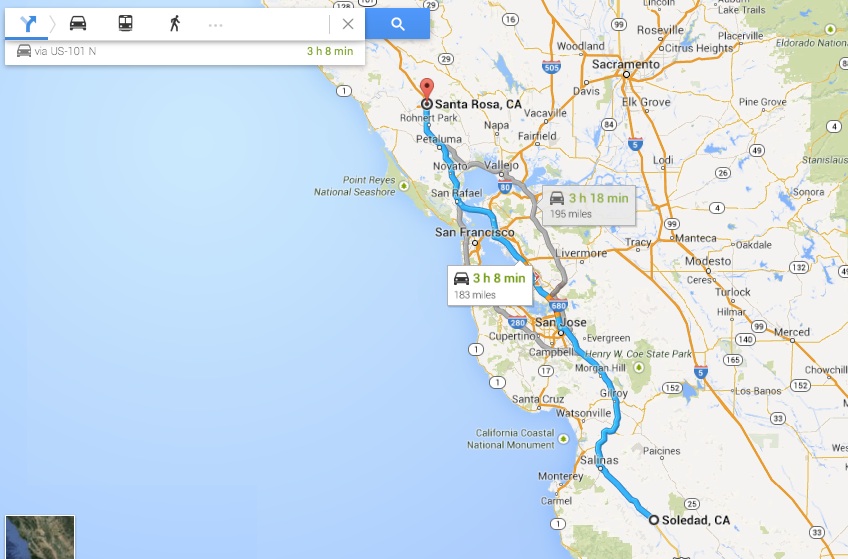 I think it took me more than 4 hours to reach Santa Rosa. Mainly due to going through SanFran. A ride down memory lane in many ways.
