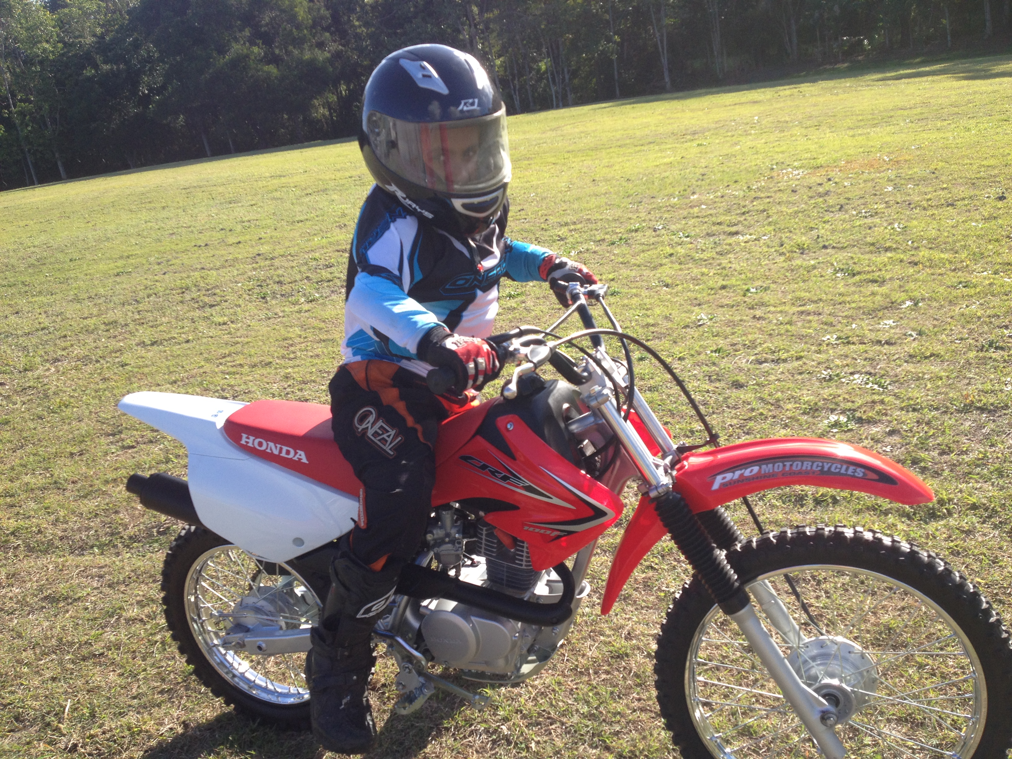 My 9yr old dare-devil is into it big time… Took him a bit of time to be able to manage to start n take off but he handles the power very well. It is much better than the 80cc JR bikes we’ve learned on. This is a torque filled motorcycle, not a mini bike.