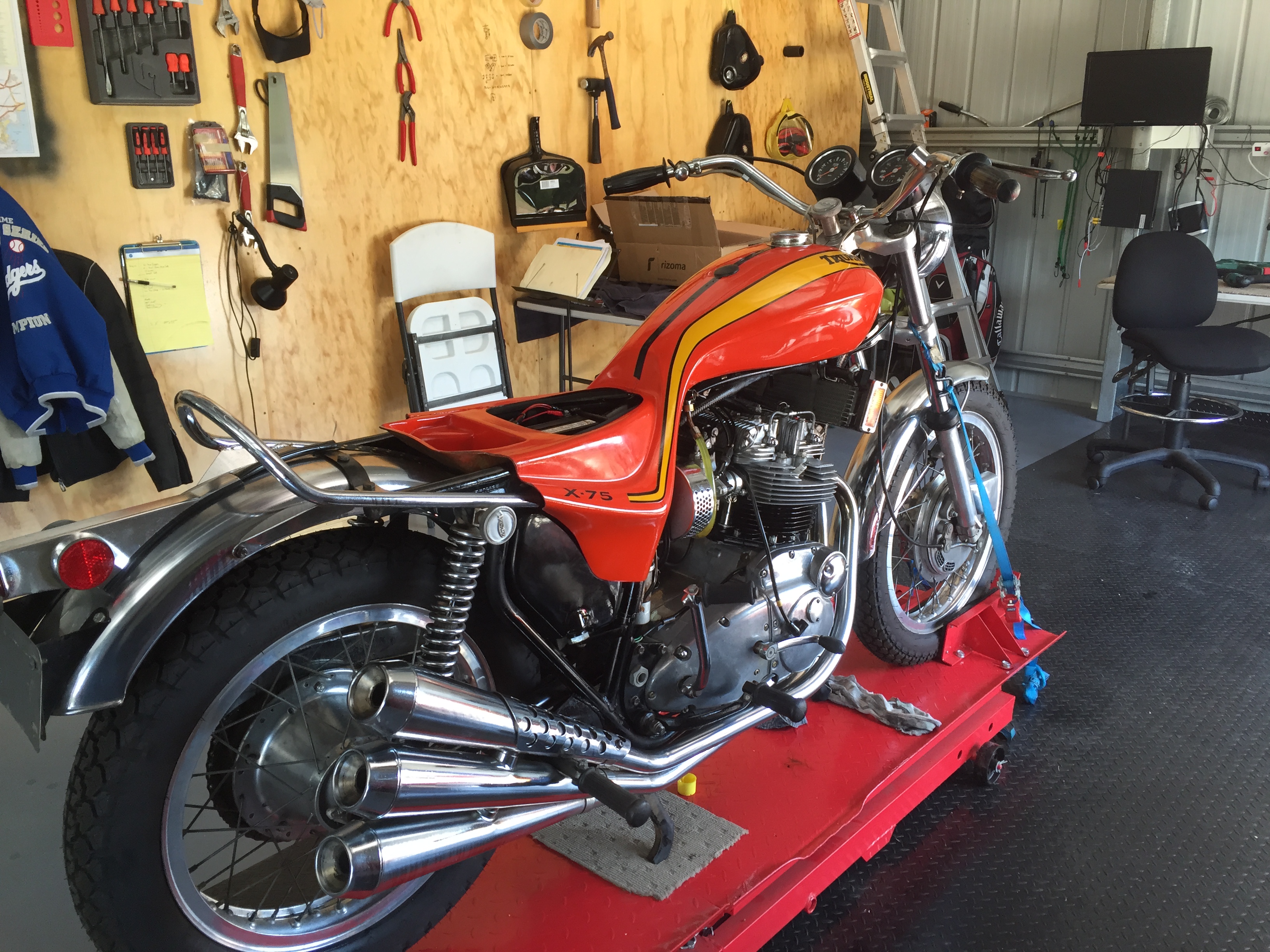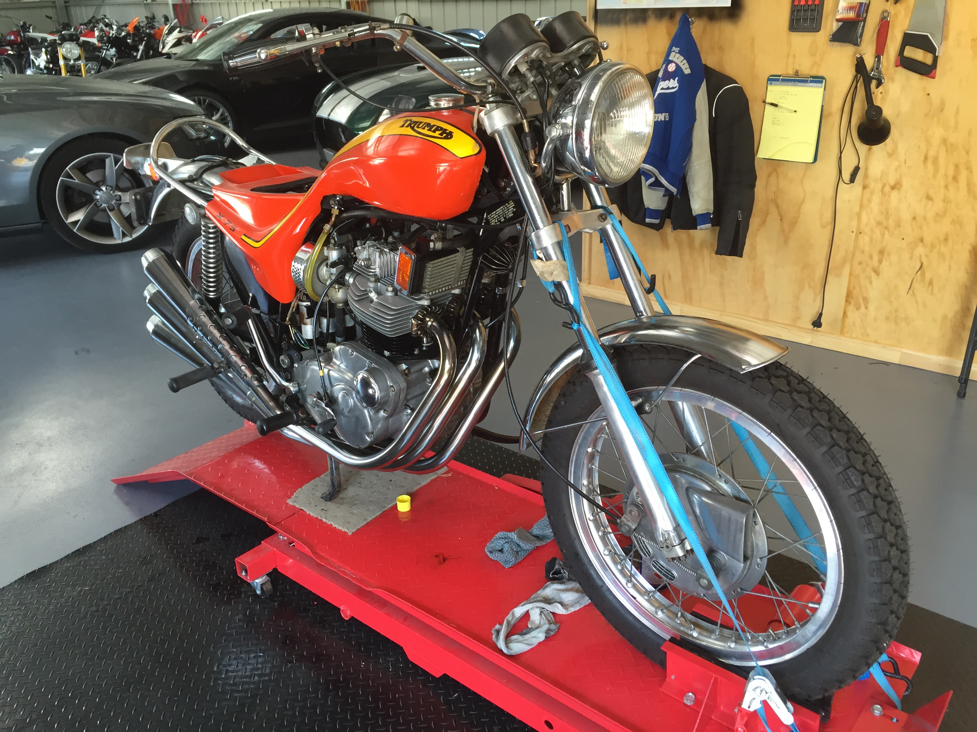 in the background, the 1957 BSA SUPERROCKET I have been wrenching for over a year …