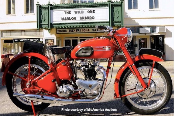 This 1952 Triumph Thunderbird is similar to the 1950 T-Bird ridden by Marlon Brando in the 1953 film “The Wild One”, but his was black. This was a huge shot-in-the-arm for Triumph Motorcycles. To capitalize on it, they would come out with an all black 6T Thunderbird called the Triumph Blackbird.