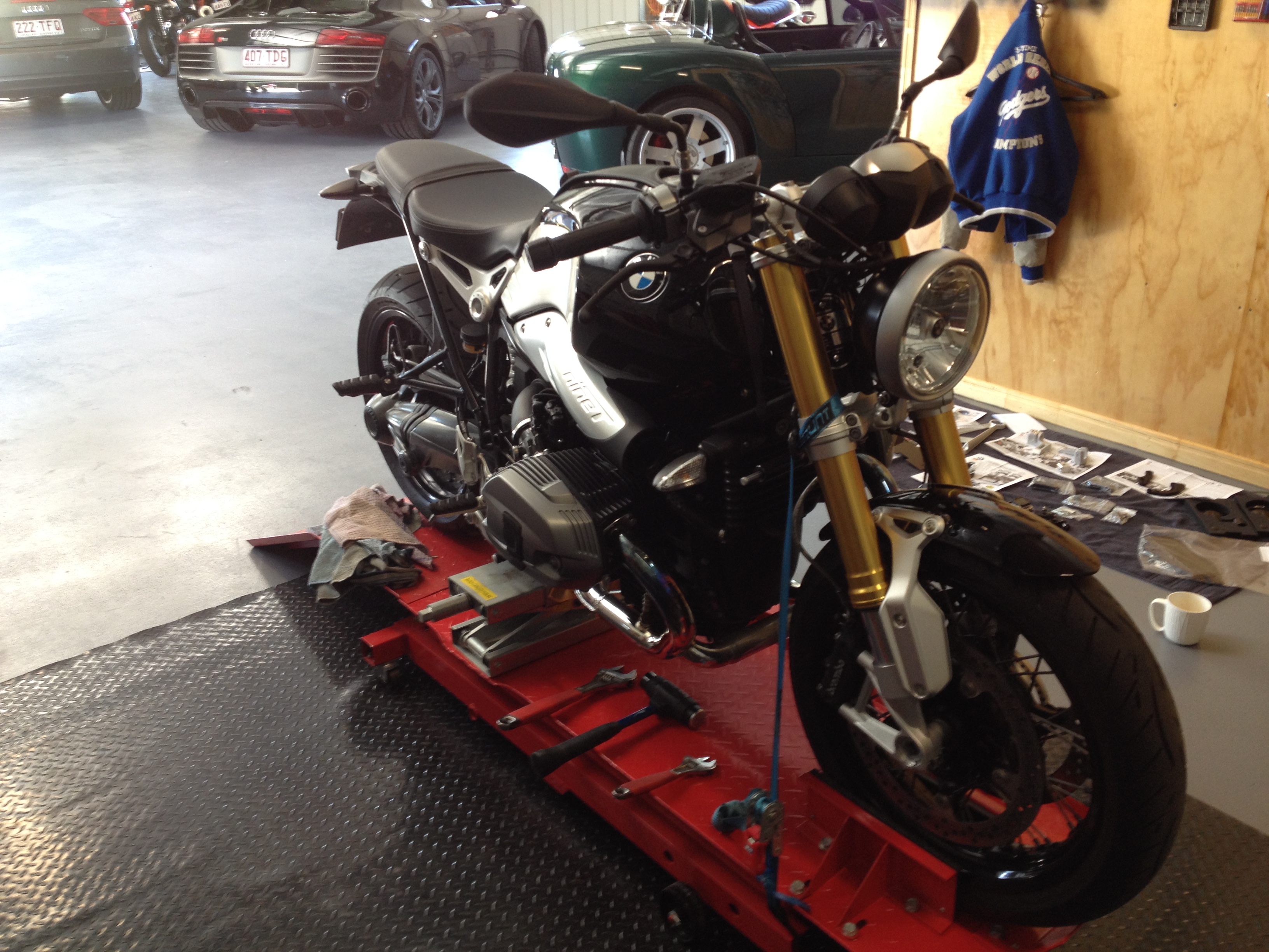 As well, I went to Wunderlich, http://www.wunderlichamerica.com/bmw/RnineT.html , and bought a tail plate that allows me to get rid of the mud guard…