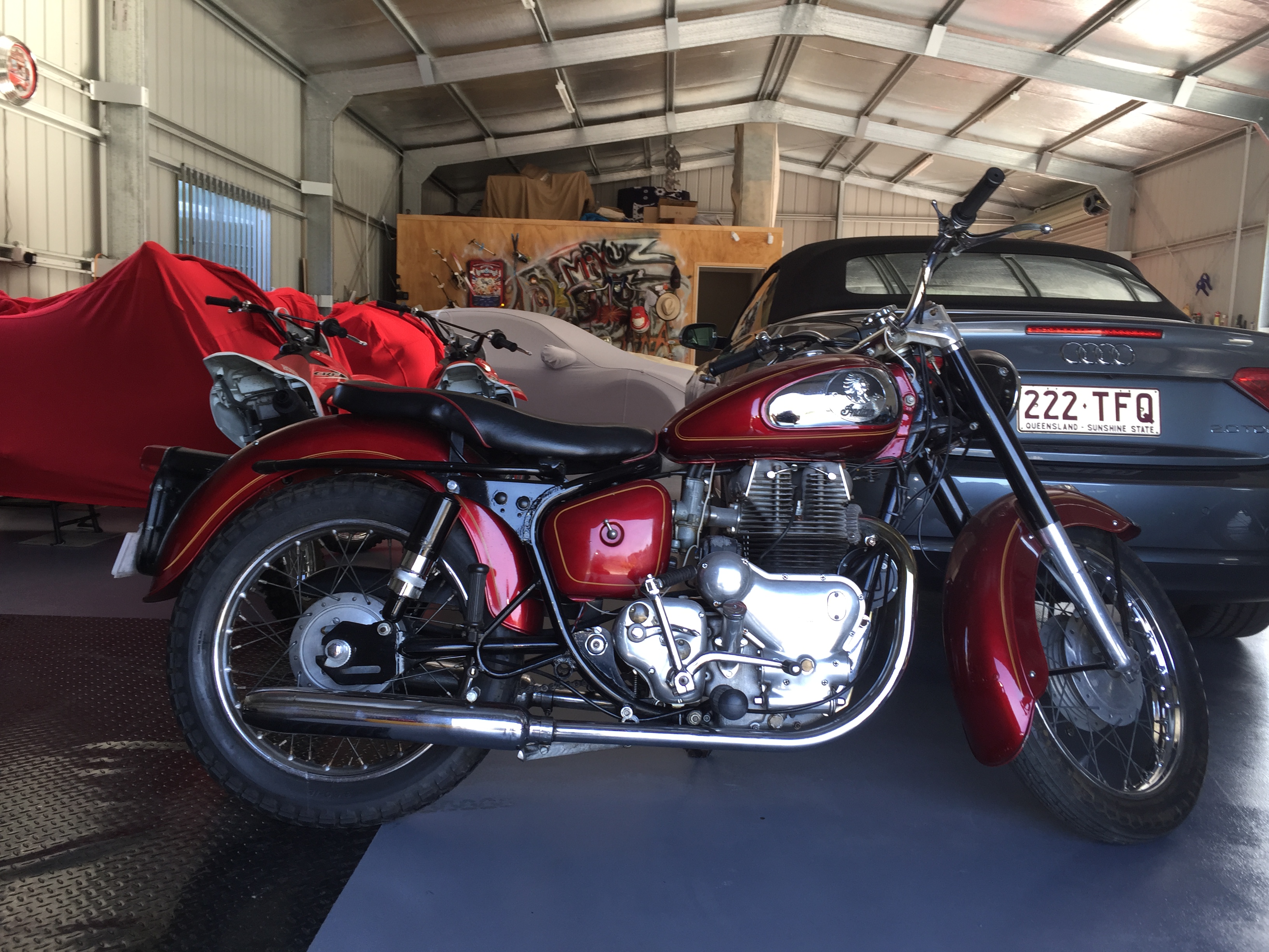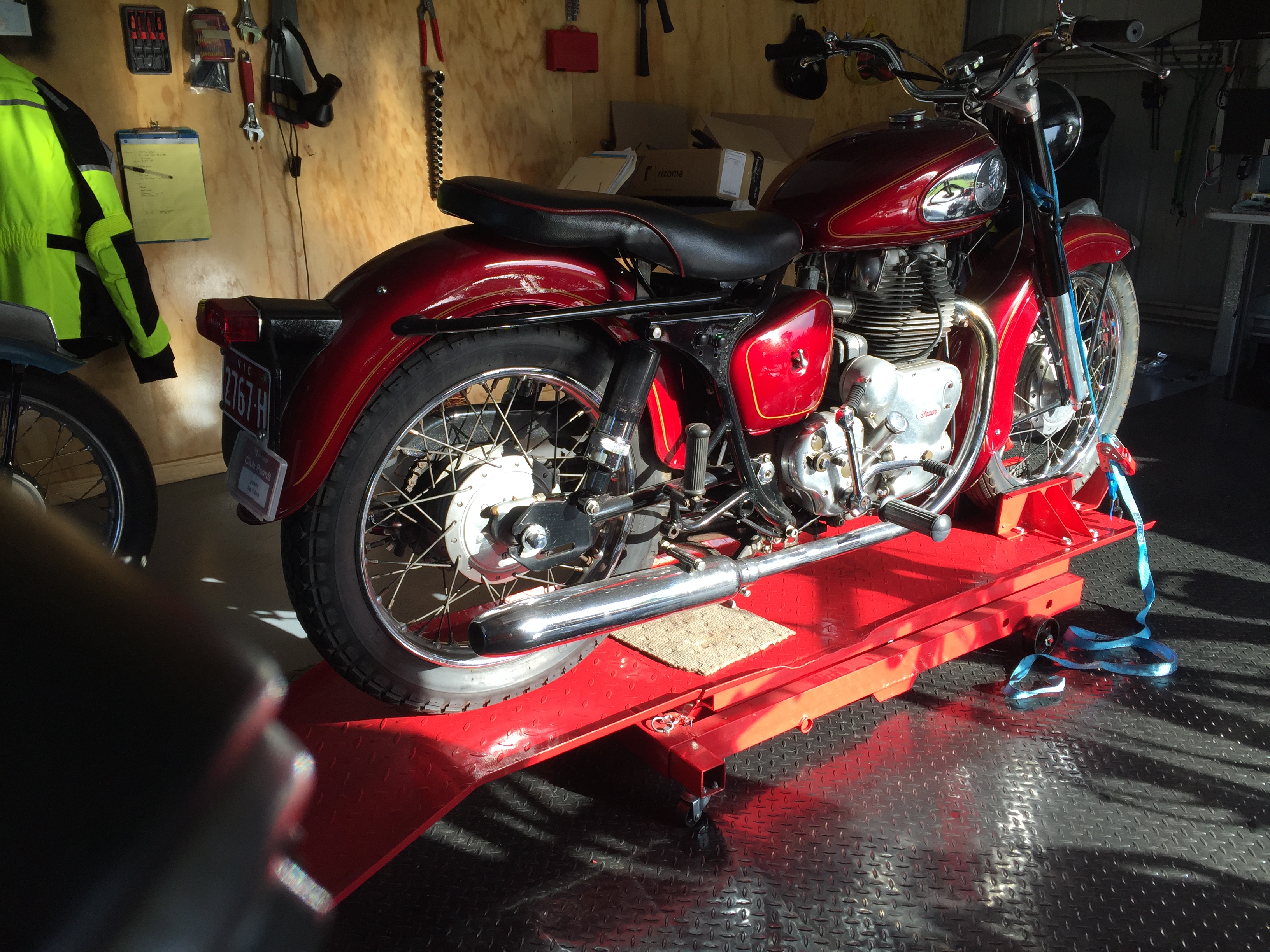 So the X75 came off the hoist yesterday… The 57 Indian is next, then the 52 Tbird… all good, good fun…