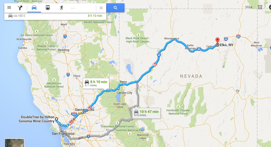 We left Santa Rosa at 6am, rode through the Napa Valley, and hit Interstate 80. We had decided to simply ride west. No prebookings or real targets. Just ride west. Grab a hotel when we were ready. I write this sitting in a hotel bed in Elko, Nevada.