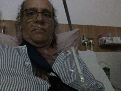There is the required IV in my right arm. A tube blowing oxygen wrapped under my nose. My left arm is in a sling and as the numbness wears off my thumb is what hurts a bit. Both legs below the knees are wrapped in pneumatic leggings. A small compressor alternately compresses one leg then the other. The damn compressor is quite noisy. Have morphine on tap but don’t need it. I think I’ll try a zap an experiment… there, l just pushed the little button, lets see what the effect is…