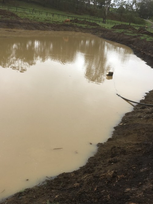It’s quite amazing how much this has gained over night. I can see that the water table has been restored, rejuvenated, returned to a state of normality. You can see the poly-water pipe and the float that keeps the suction off the bottom. We use this body of water to irrigate. We have not irrigated for weeks and weeks. This coming back is huge to the farm.