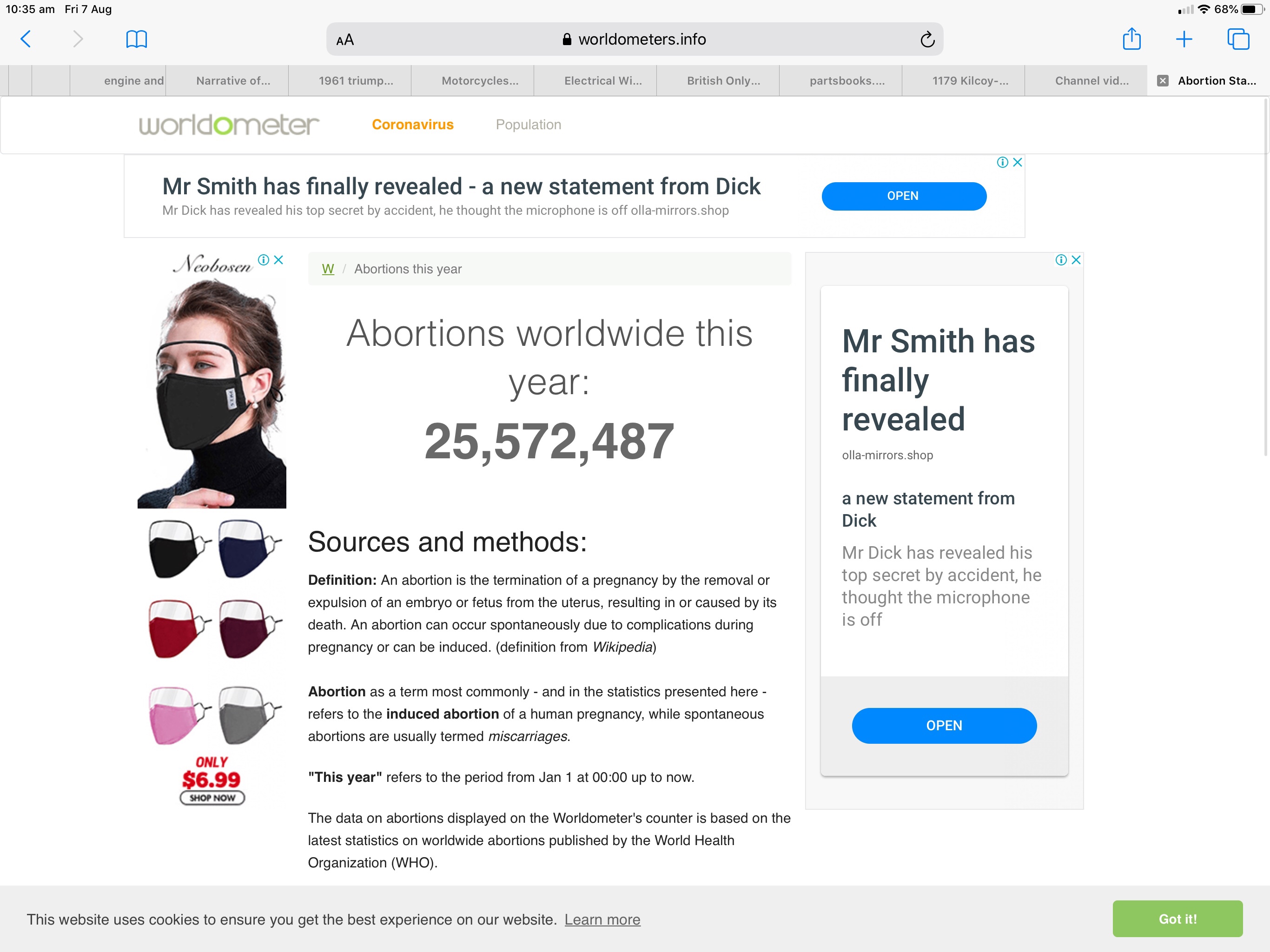 But I’m not here today to discuss the world wide waste of life. I’m aiming here to raise once again the fact that the planet has gone into lockdown over 716,516 deaths to the Kungflu. And I firmly believe the numbers of abortions are closer to factual than the numbers of deaths by Kungflu.