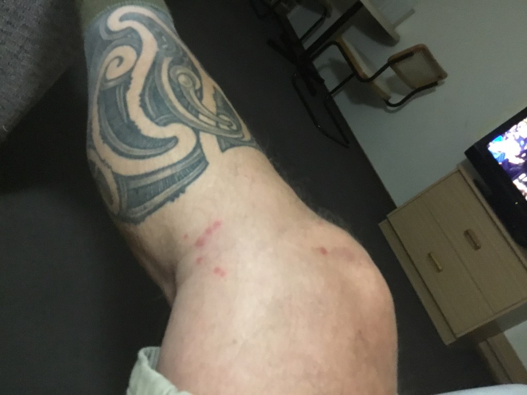 Last night I got et-up on one leg by bed-bugs…
