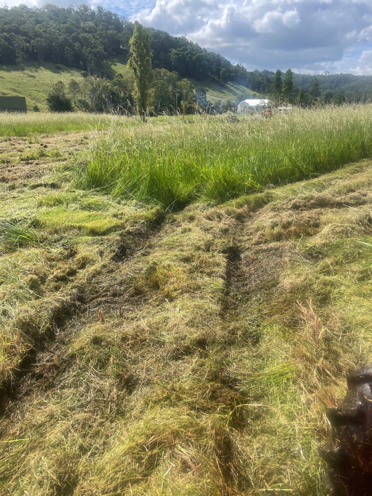 Slashing requires the big 50hp tractor and the big 72inch PTO slasher. A lot of machine that does a big job but is slow, messy. I have a small PTO ride on slasher that works well, once the first couple slashes are complete. Tho uncomfortable its is a great machine to bring the wild grasslands into the realm of domesticity. But the driver sits only a foot or so off the ground. It’s like a little go-cart with a PTO slasher. Very cool, Very useful.