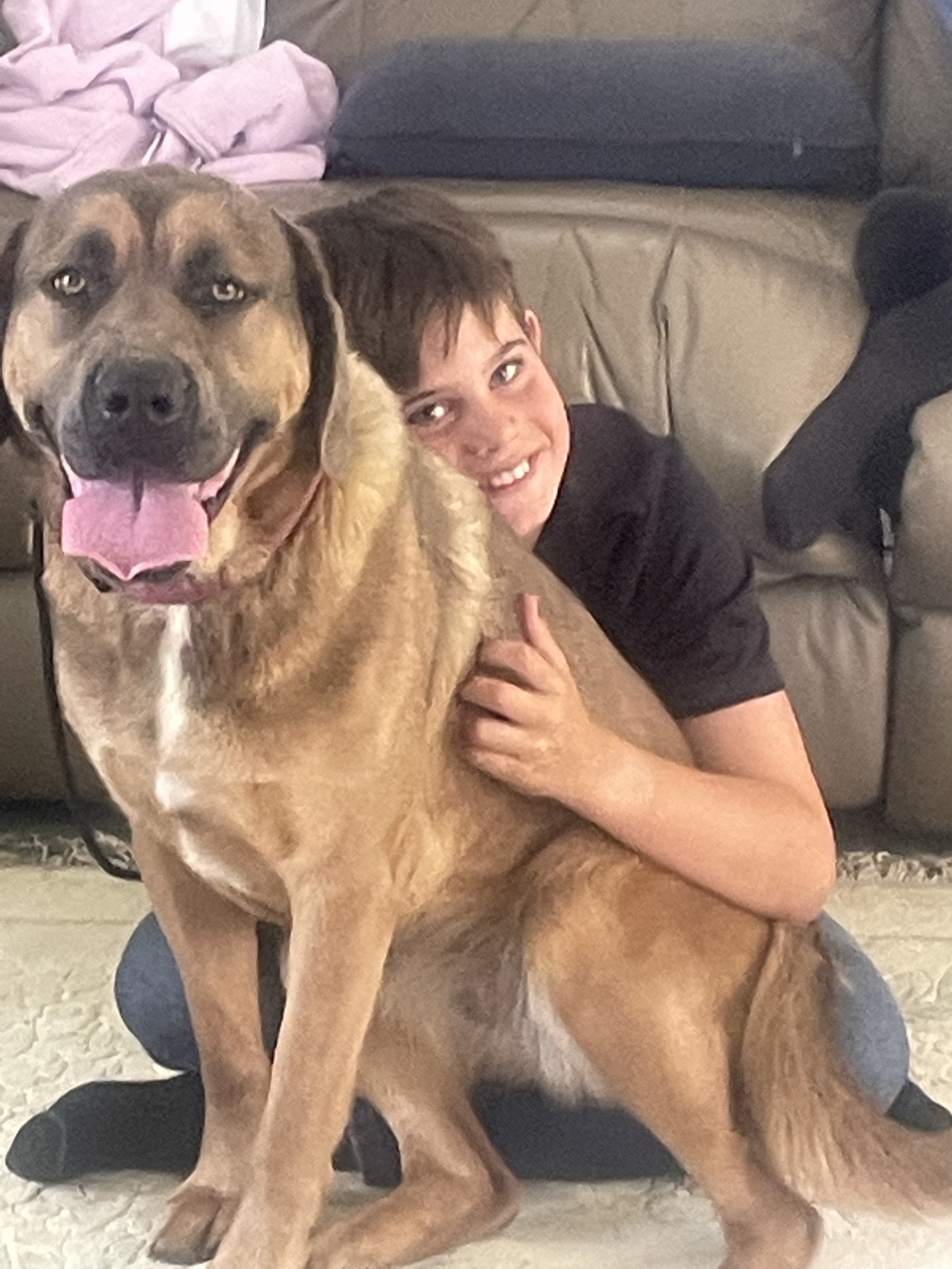 This picture is cool in that it shows you that the Dawg is as big as the kid, and has bigger teeth. The fact that Nia will basically sit on Roger’s lap, and trade hugs, shows us she is well socialised.