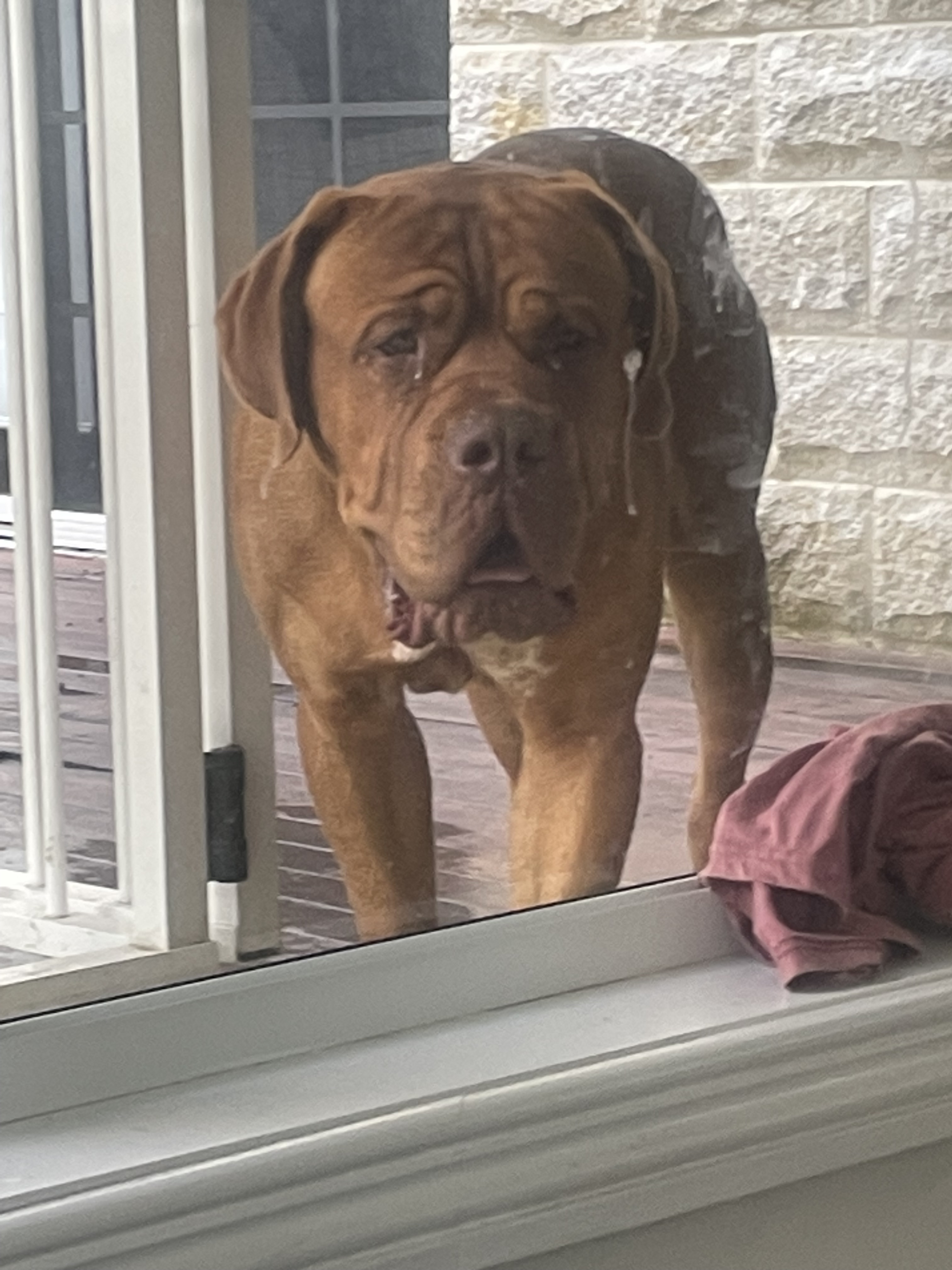 The two males represent my sperm bank. Big Red is a Doggo Bordeaux. Mojo is a Mastini. I have a few years of breeding organised. And a hell of a lot of $$ invested.