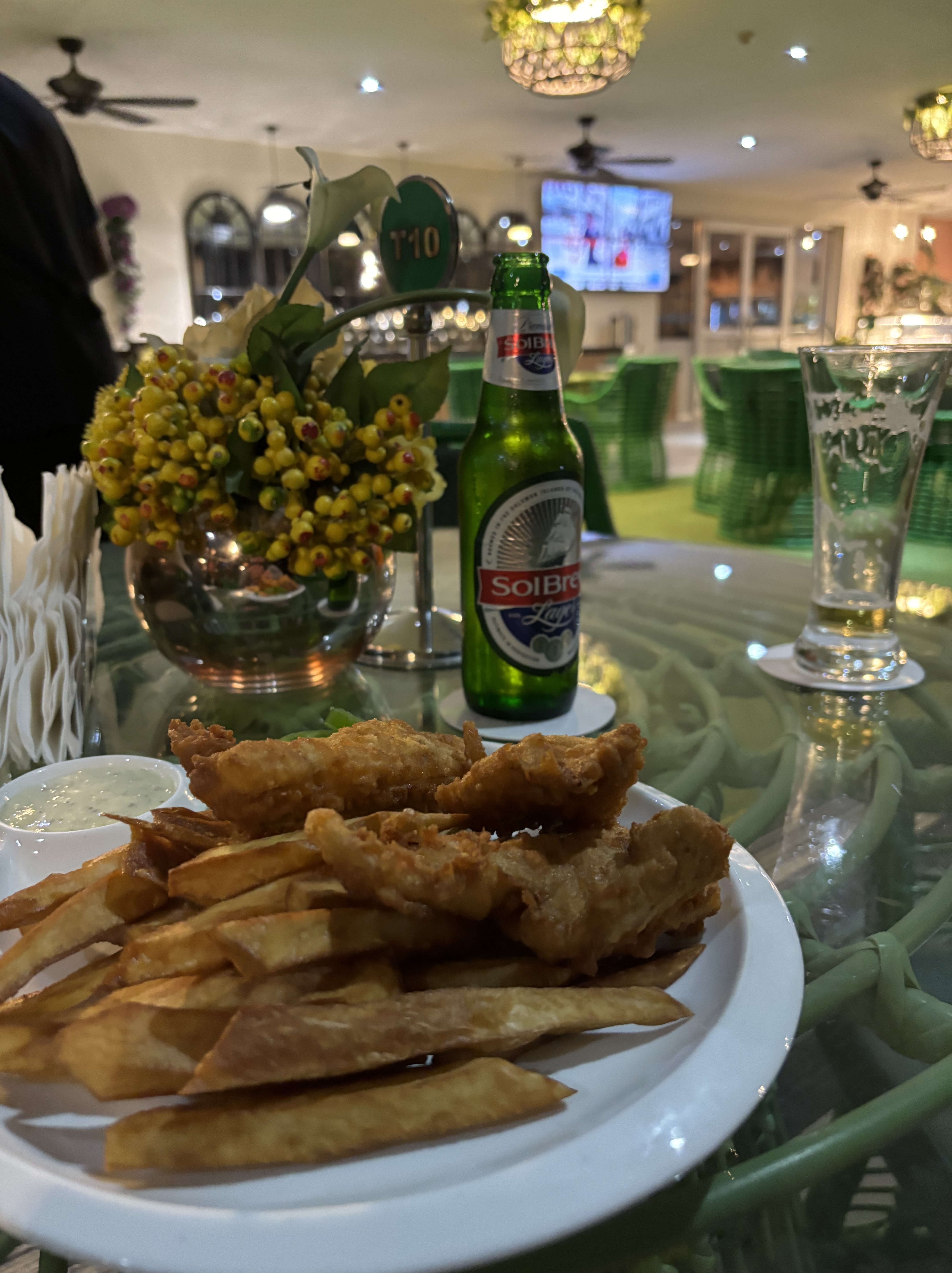 There are a few gringos around… the place is by no means busy. I have spoke to Eve, who got me my first beer, and Ivory, who got me my second. Grace took my dinner of fish n chips away. Fish n chips in the Solos…. Steak in Iowa… not the other way around…