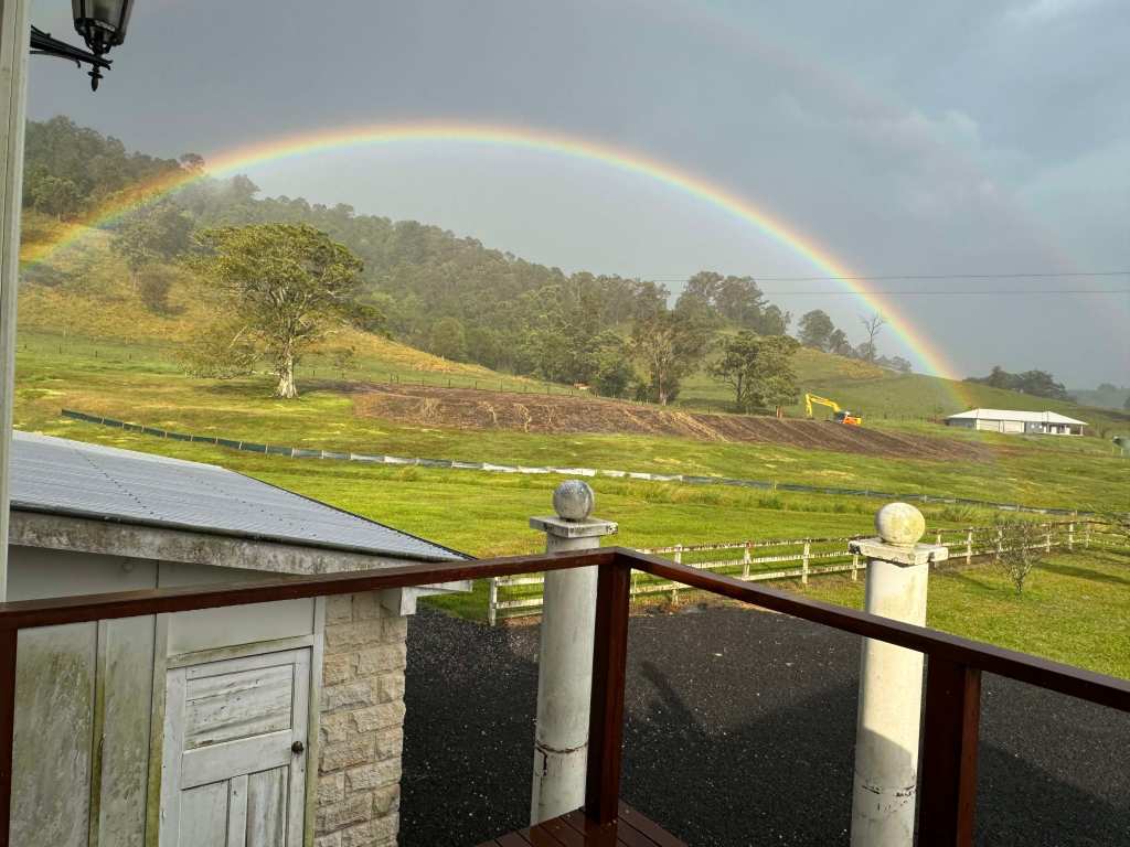 I had to rush out shirtless to get my truck out of the hail and into the shed. I got battered by hail getting to the truck, sat in the shed deafened by the sound of the hail drumming the tiny roof, then walked back to the house in a light rain, with a magnificent rainbow close enough to touch, exhilarated and happy. All within 10minutes.