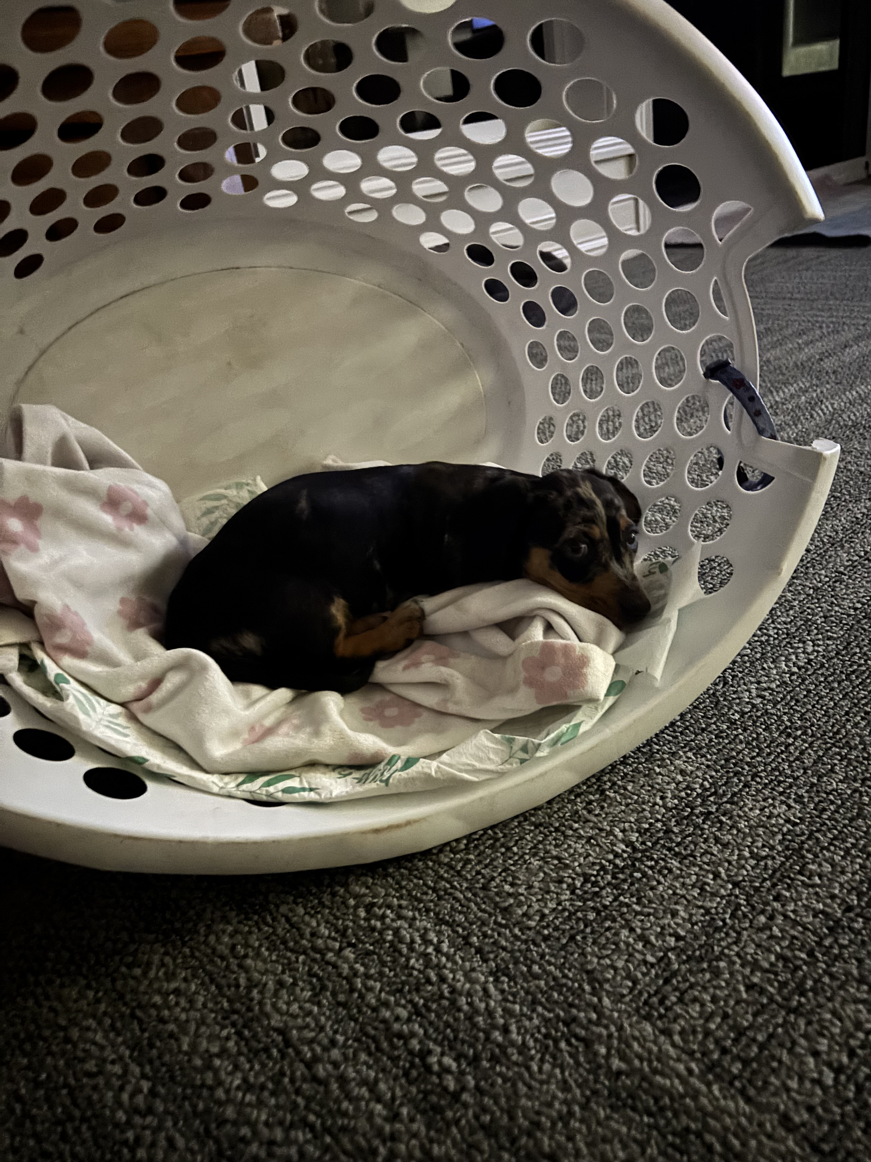 Picked up a new Dawg this past week, and surprisingly, it’s not one of my usual big-dog-breeds. Nope, I have been given an opportunity to swap one of my upcoming mastiff pups for a wiener-dog. My mastiffs weight 100lbs/ 40kgs. The new pup is less than 2kgs/ 4lbs.