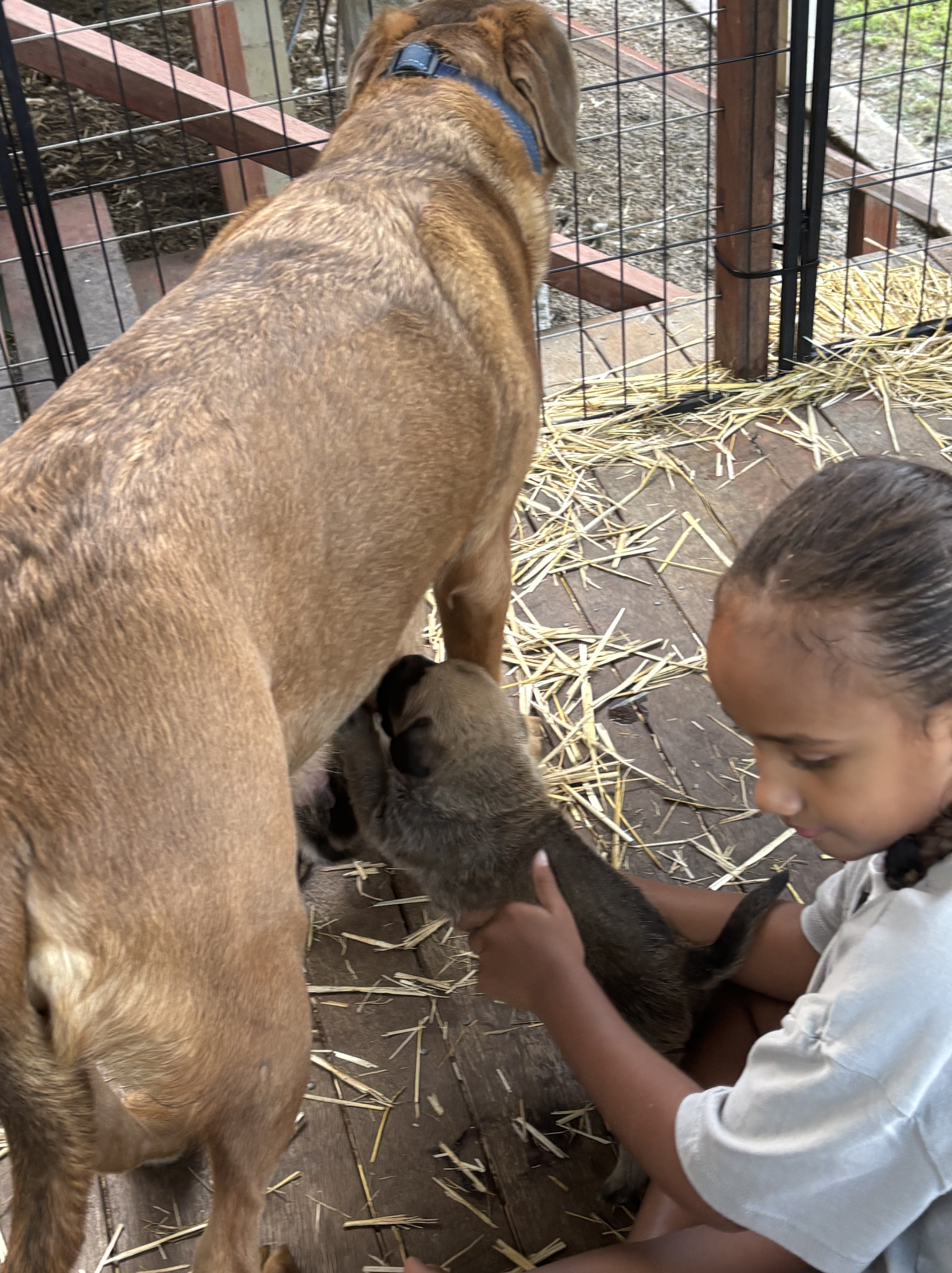 Our mama-dawg, Nia, is relaxed with the kids. I think she enjoys them “helping”.