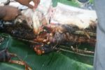 A few days back we caught a nice blue fin trevally. We were running a 20lb reel and the fish may have been 5lbs so it was no drama to haul in. Mendozza and his uncle Robbie shared the task of cranking the beast in. Note in the picture how it had swallowed the lure. Had to cut the fish open to get it out.