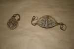 These are interesting and gruesome… I have studied these and sought assistance… it would appear that these are pendants made from human skull bone. Not sure if I am going to make a bola tie out of either but is an idea…