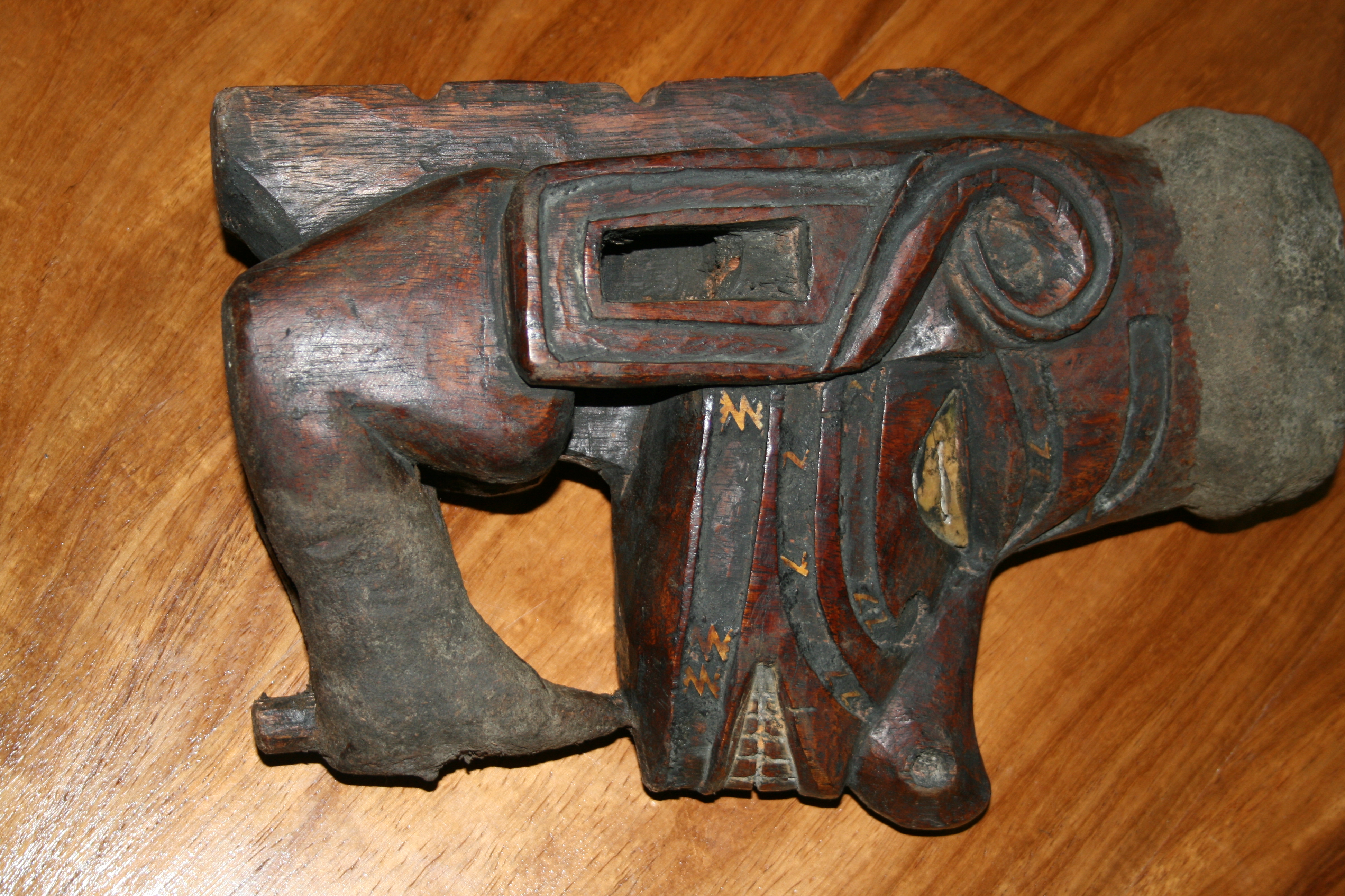 This is old. From Makira. It is special in that any workmanship done on this piece was carried out with stone tools. It is worn, almost worn out, but a magnificent piece none the less.